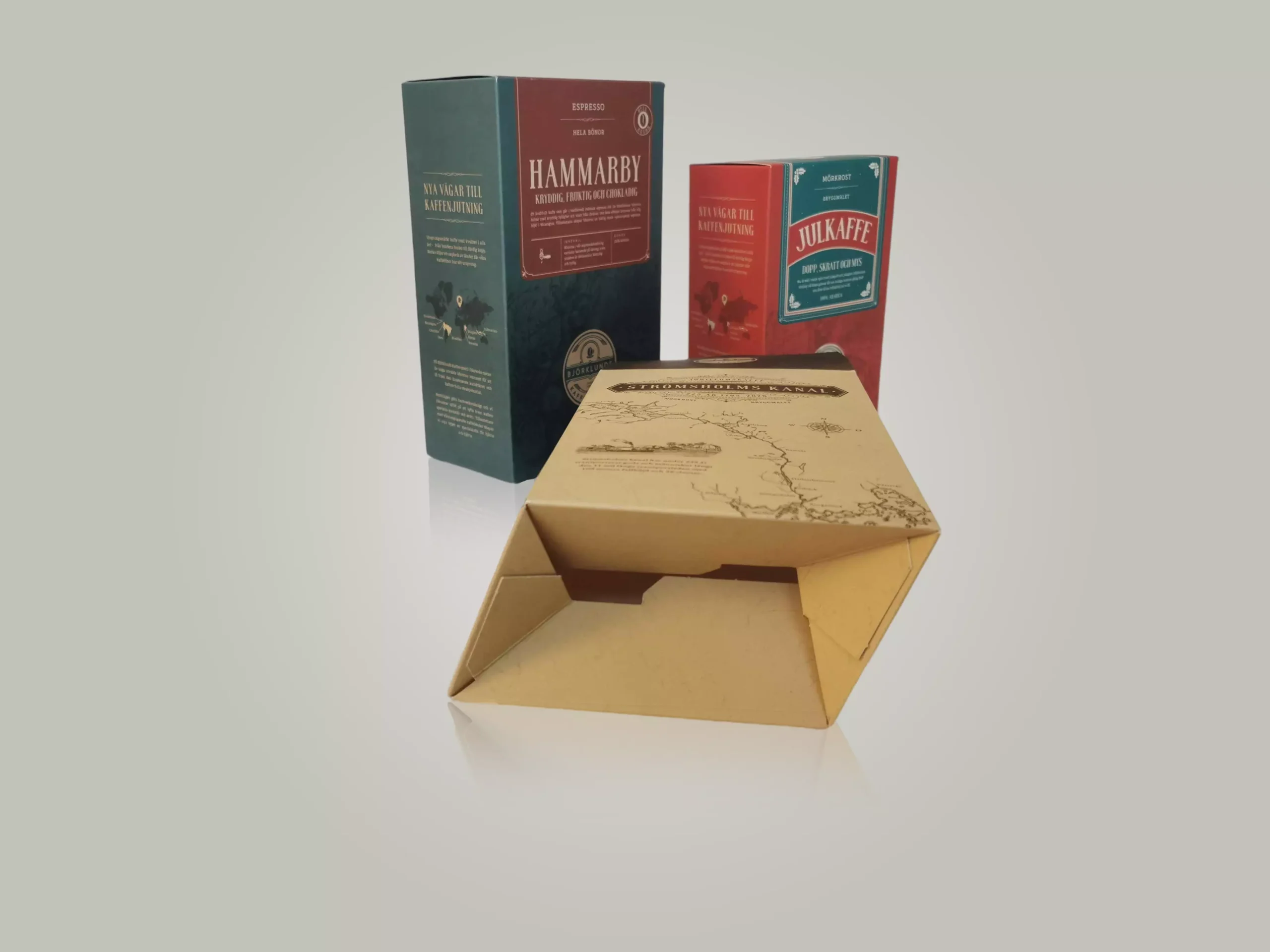A coffee cardboard box is usually secondary packaging. In other words, it is not packed directly into a cardboard box. Thus, these boxes mainly have a marketing purpose. The nicer it looks, the higher chance it will be quickly gone from a store shelf.